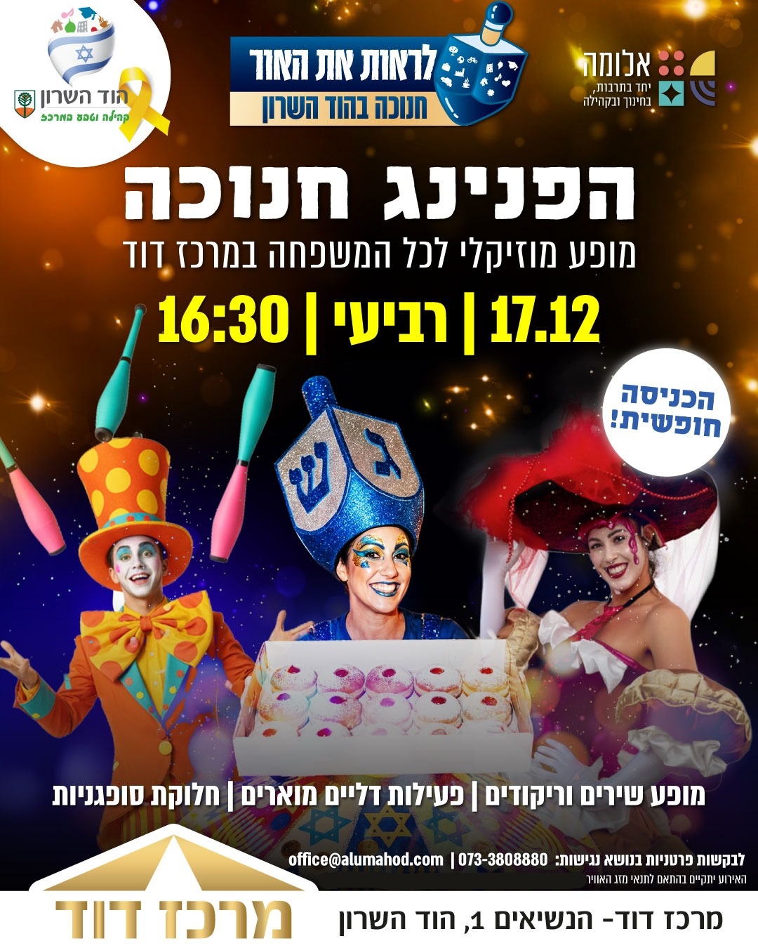 ספר, אישה, בית מופע ספרותי כרטיס רגיל: 60 ₪ כרטיס תושב/ת הוד השרון: 50 ₪ 19.12 יום שישי 20:00 לכרטיסים