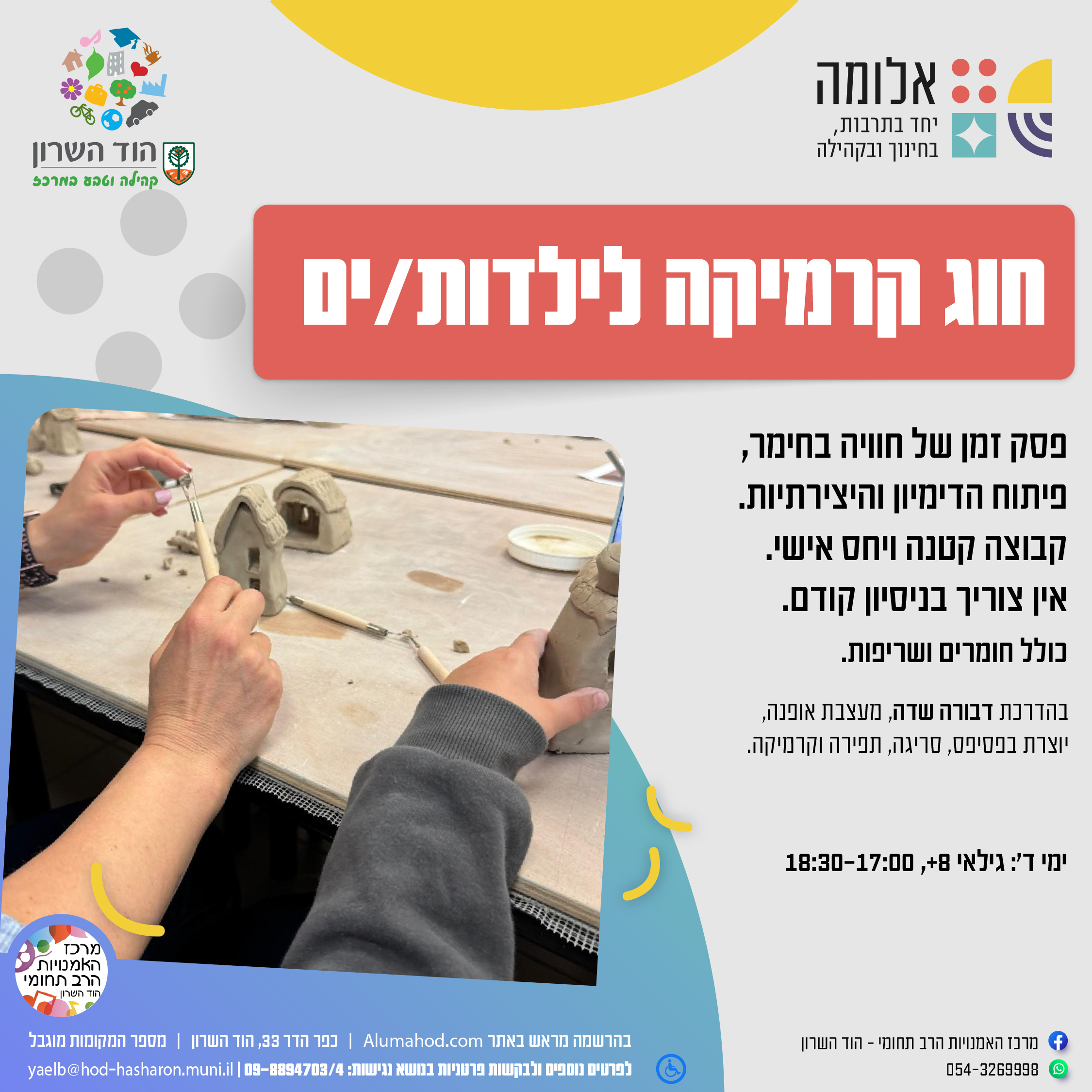 ימי רביעי | 17:00-18:30 | 325 ש"ח לחודש (כולל חומרים ושריפות)