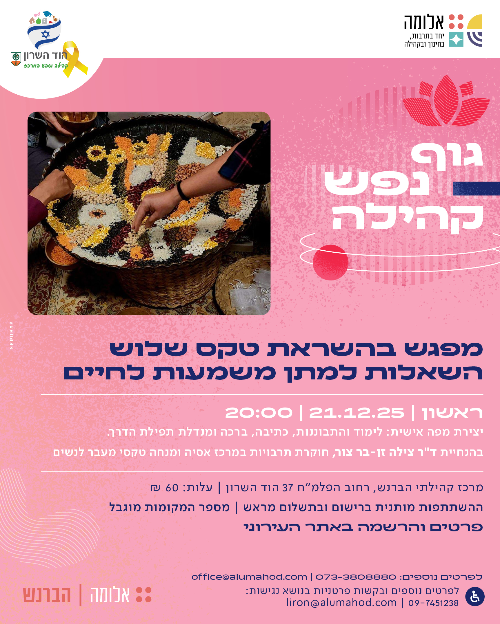 עלות 60 ש"ח למשתתפ/תלהרשמה | לחצו כאן