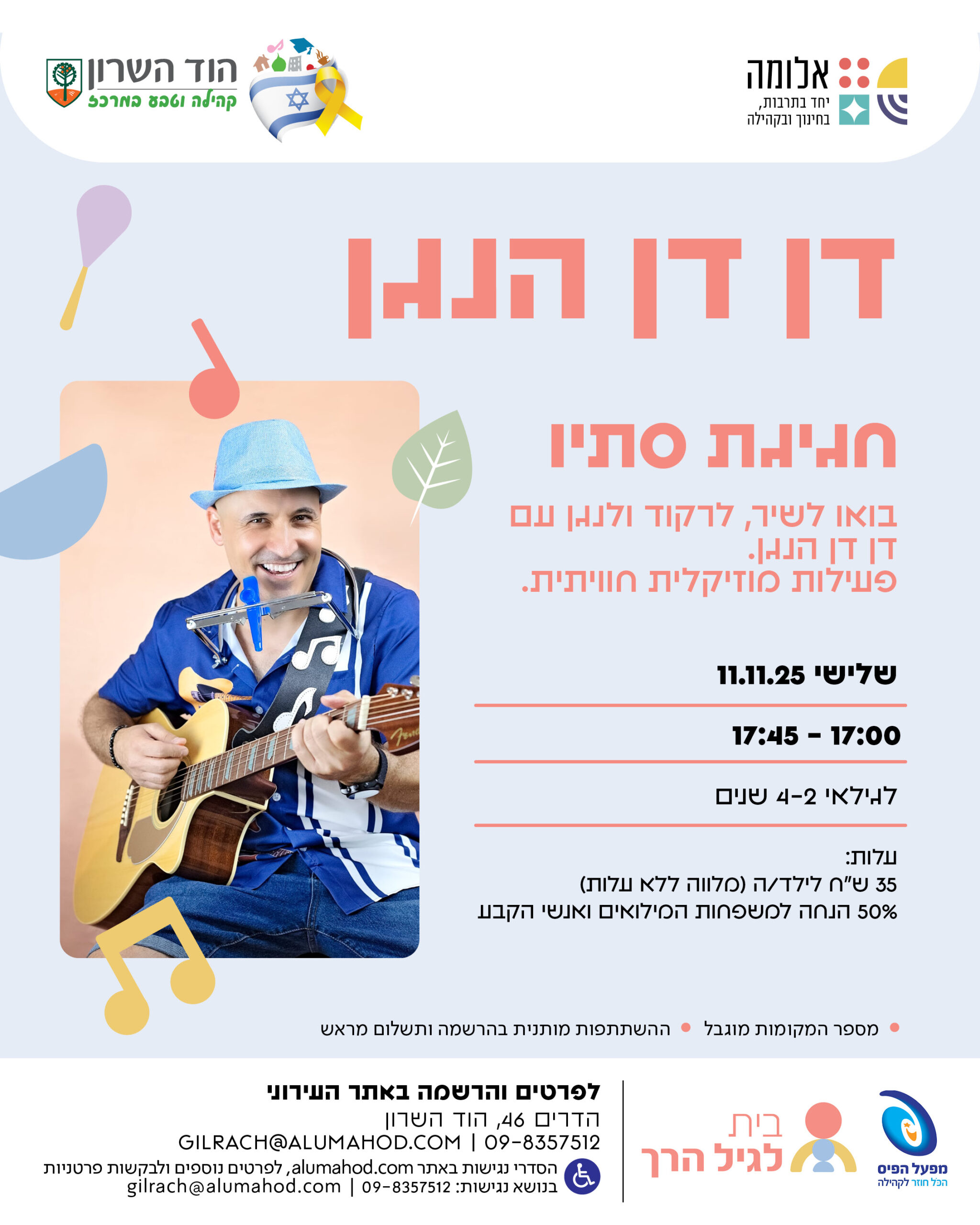 בואו לשיר, לרקוד ולנגן עם דן דן הנגן.